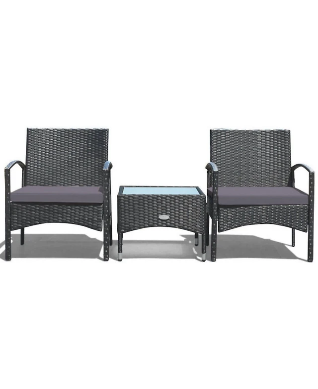 Sugift 3 Pieces Patio Wicker Rattan Furniture Set with Cushion for Lawn Backyard