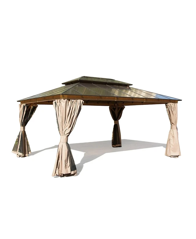 Outsunny 10'x20' Wood Gazebo, Hardtop Lean-to Gazebo Pergola, Light
