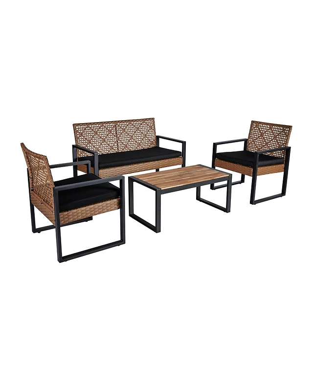 Gymax 9PCS Acacia Wood Outdoor Dining Set w/ 1.97'' Umbrella Hole for Backyard Garden