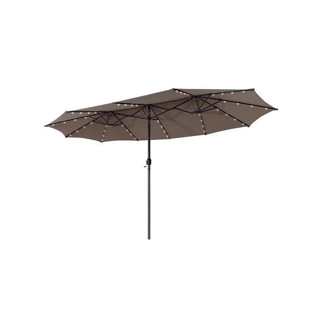 Gymax Outdoor 15' Double-Sided Patio Umbrella 48 Solar Led Lights Crank & Base Wine