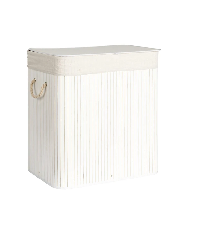 Household Essentials Bamboo Double Laundry Hamper with Rope Handles, 39-Gallons, White