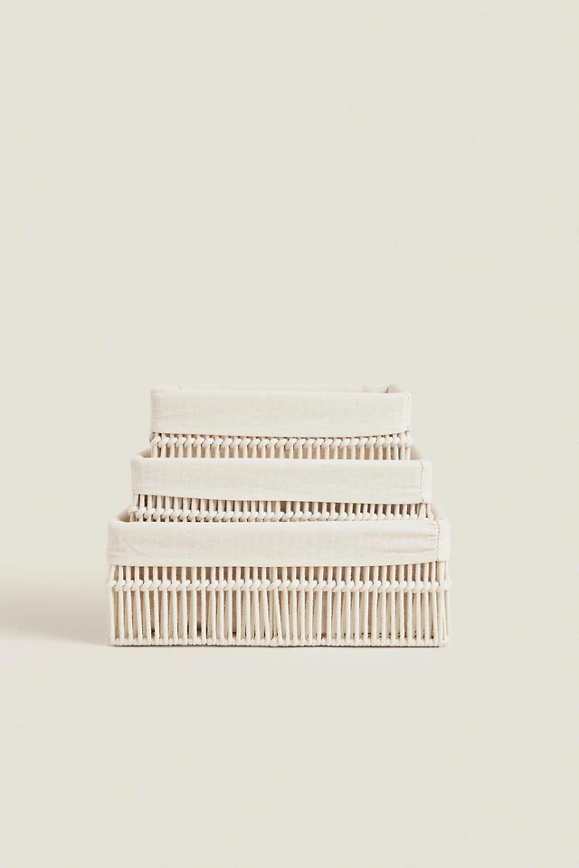 Storied Home Woven Bamboo Baskets with Wooden Legs, Black, Set of 3