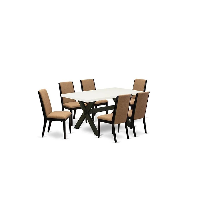 East West Furniture 7-Pc Dining Set Includes 6 Modern Dining Chairs with Upholstered Seat and High Back and a Rectangular Breakfast Table