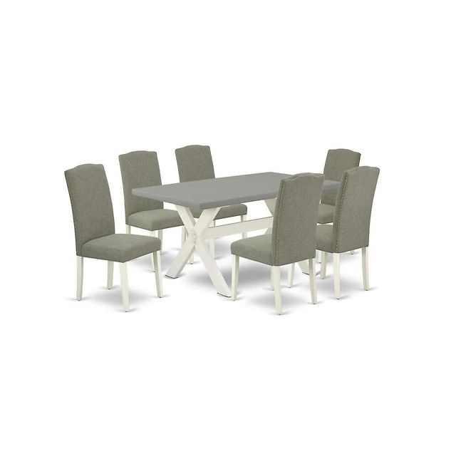 East West Furniture 5-Piece Beautiful a Good Cement Color Kitchen Table Top and 4 Lovely Linen Fabric Solid Wood Leg Chairs with Nail Heads and Stylis