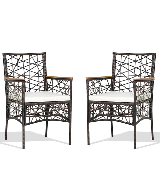 Set of 2 Outdoor Patio Pe Rattan Dining Chairs Armrest Stackable Garden