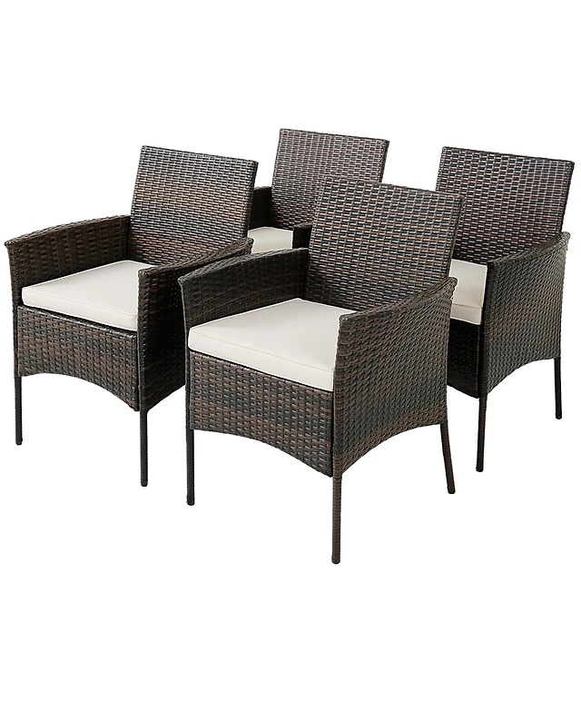 Gymax Patio 4PCS Rattan Arm Dining Chair Cushioned Sofa Furniture Brown