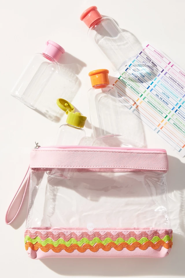Miamica Rickrack Wristlet Bag 8-Piece Travel Bottle Set