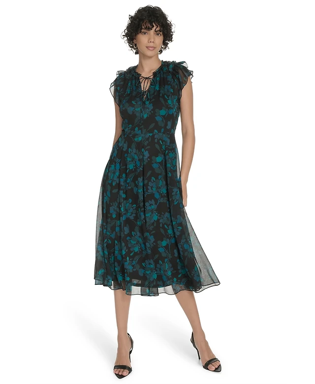 Tommy Hilfiger Women's Flutter Sleeve V-Neck Dress