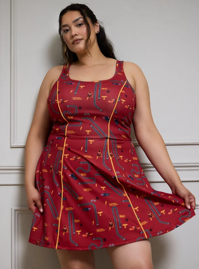 Disney Pixar Cars Lightning McQueen Icons Allover Print Plus Active Dress - BoxLunch Exclusive