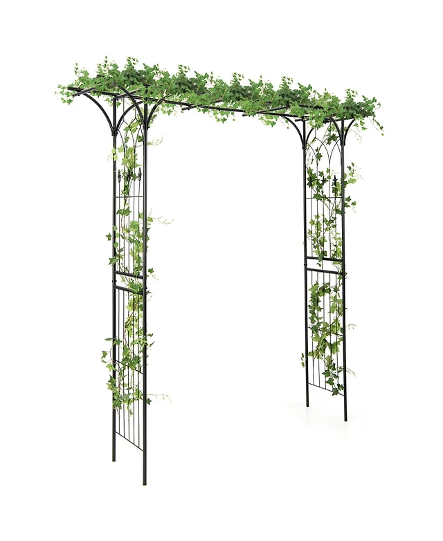 Skonyon 7.9 Feet Metal Garden Arch Backdrop Stand with Fence for Climbing Plants-Black