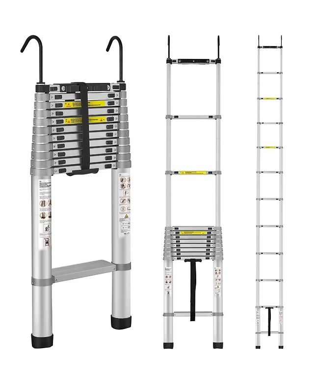 Mecale 15 ft Telescoping Ladder, Aluminum Multi-Button Retraction Extension Ladder, 400 lb Capacity, Non-Slip Feet, Ansi Listed