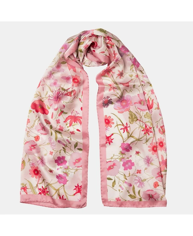 Jessie Zhao New York Double Sided Silk Scarf Of Pink Blossom Jungle