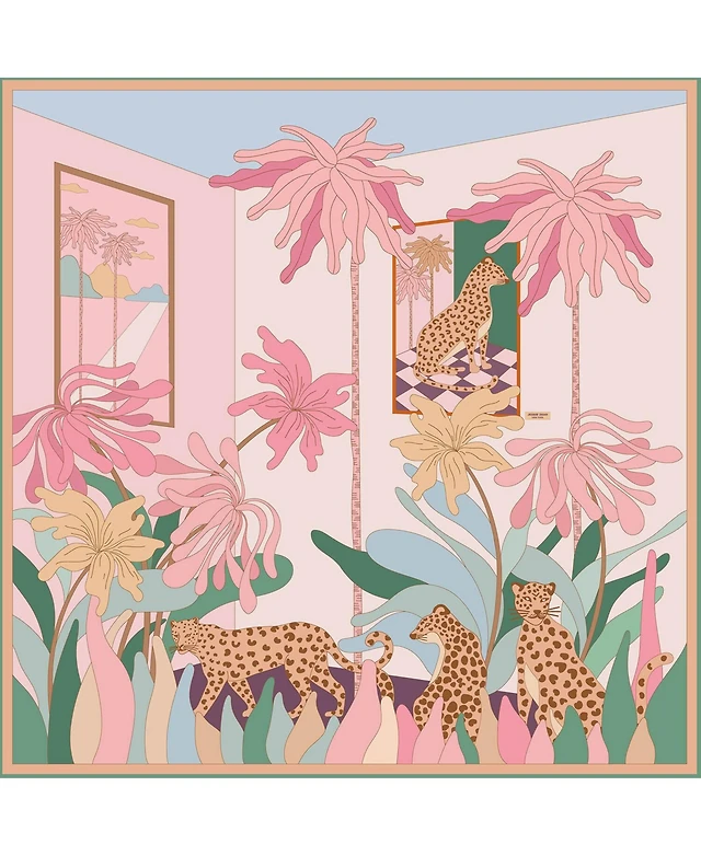 Jessie Zhao New York Double Sided Silk Scarf Of Pink Blossom Jungle