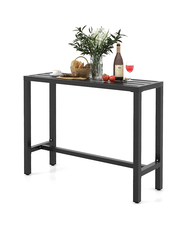 Slickblue 39 Inch Patio Acacia Wood Bar Height Table with Slatted Design
