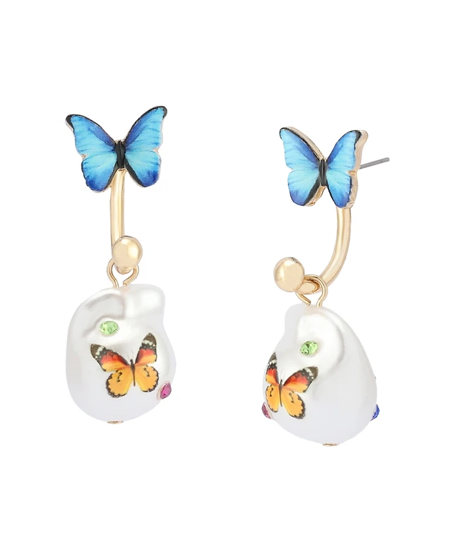 Betsey Johnson Faux Stone Backyard Butterfly Barbell Earrings