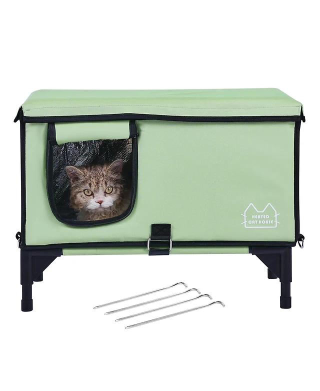 Cozito Large Heated Foldable Outdoor Cat Shelter, Green