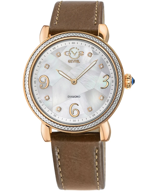 GV2 by Gevril Women's Bari Tortoise Swiss Quartz Tan Leather Watch 30mm x 34mm