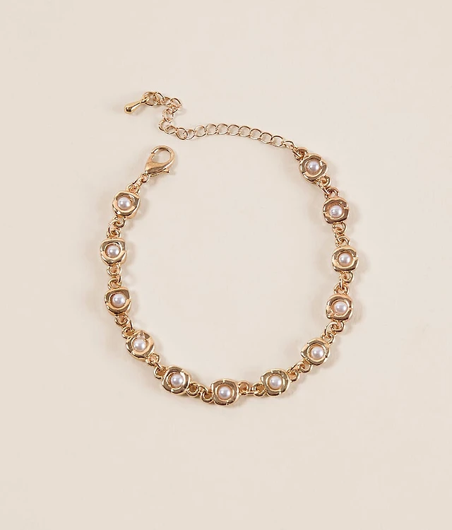Gigi Girl Teens 14K Gold Plated With Pearl Link & Chain Bracelet
