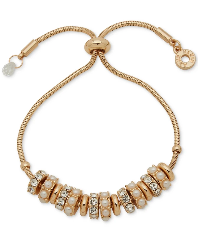 Adornia Gold Adjustable Cubic Zirconia Mother of Pearl Clover Station Necklace