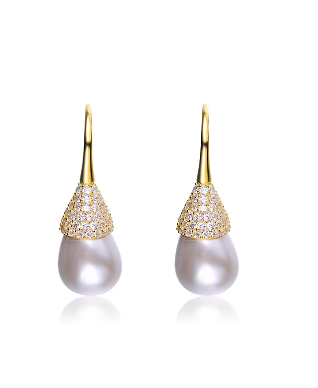 Sterling Silver Cubic Zirconia and Pearl Bulb Earrings