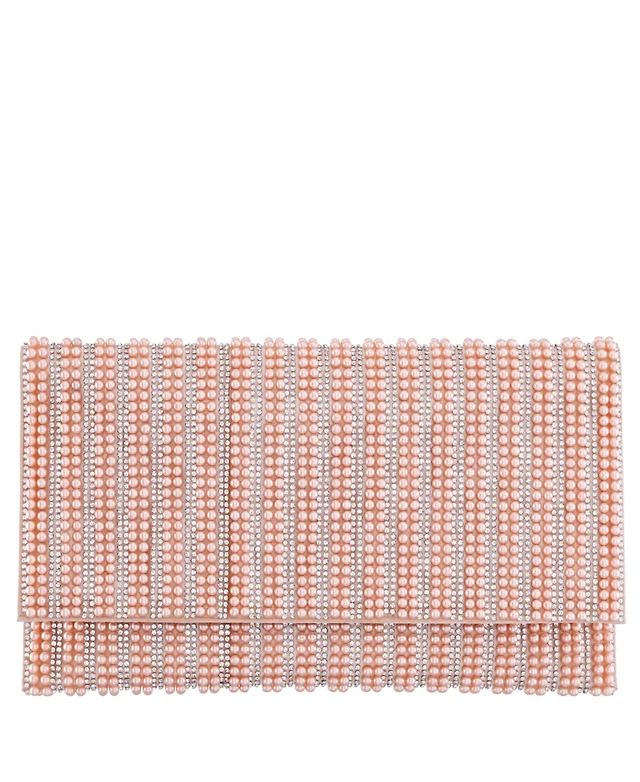 Women's Allover Imitation Pearl and Crystal Envelope Clutch