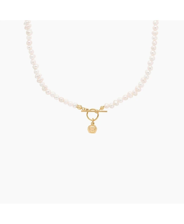 18K Gold Plated Freshwater Pearls with a Coin Pendant - Connie Necklace 17" For Women