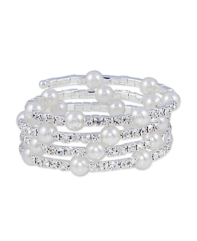 Macy's Station Imitation Pearl with Crystals Coil Wrap Bracelet