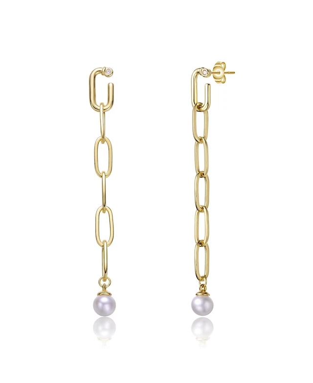 7.0mm Freshwater Cultured Pearl and Baguette Emerald Vintage-Style Drop Earrings in 10K Gold