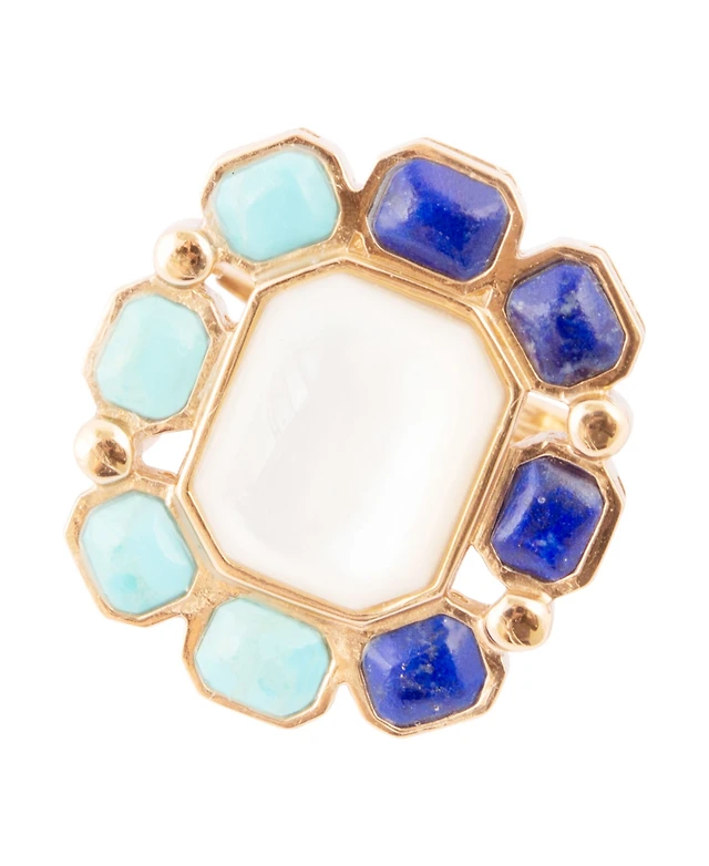Gigigirl 14k Gold Plated With Mother Of Pearl Cubic Zirconia Beaded Band Stacking Ring