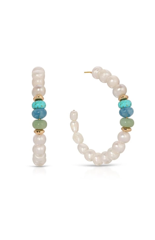 Anne Klein Imitation Pearl and Crystal Stone Gold-Tone 2-Row Pave Hoop Earrings