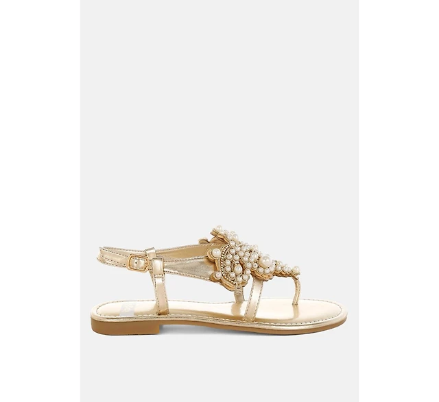 Jumera Metallic Pearl Embellished Wedges