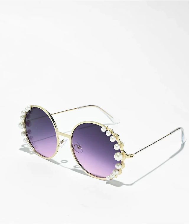 2028 Gold-Tone Pink Imitation Pearl Magnifying Glass Necklace