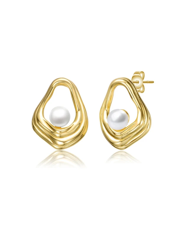 Rachel Zoe Gold Plated Pearl Huggie Hoop Earrings