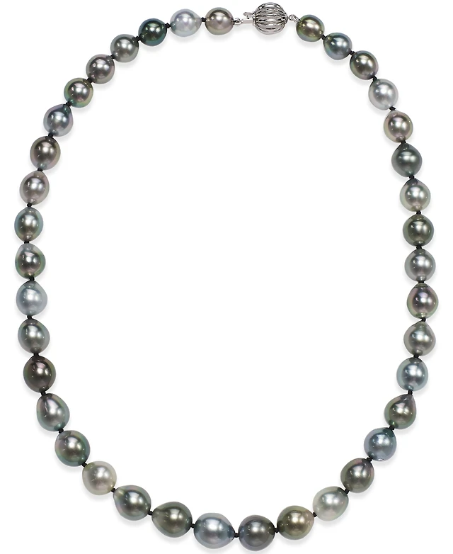 Tahitian Pearl (9mm) and Diamond Accent Pendant Necklace in 14k White Gold