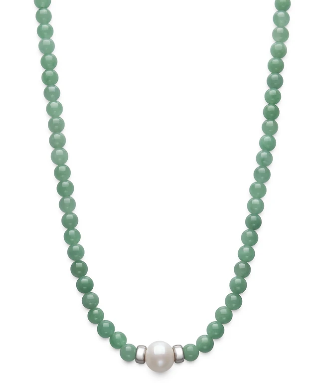 Dyed Green Jade & Cultured Freshwater Pearl (7mm) Bead Bracelet in Sterling Silver
