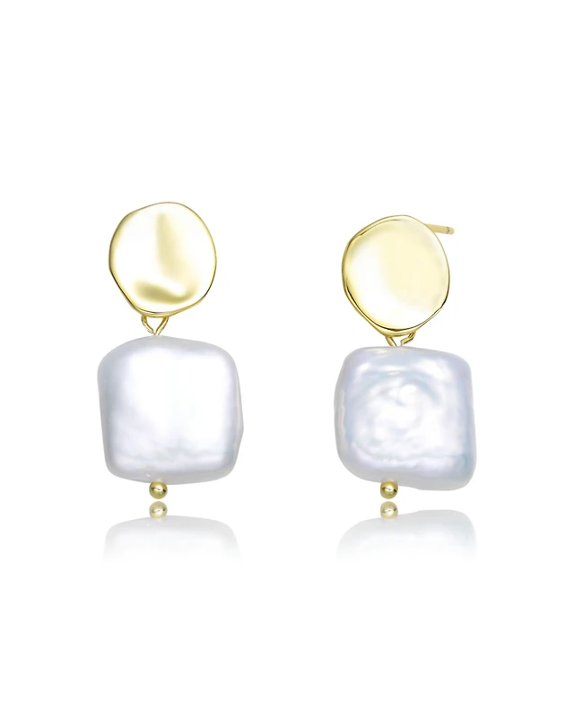 Stylish Sterling Silver with 14K Gold Plating and Genuine Freshwater Pearl Dangling Earrings