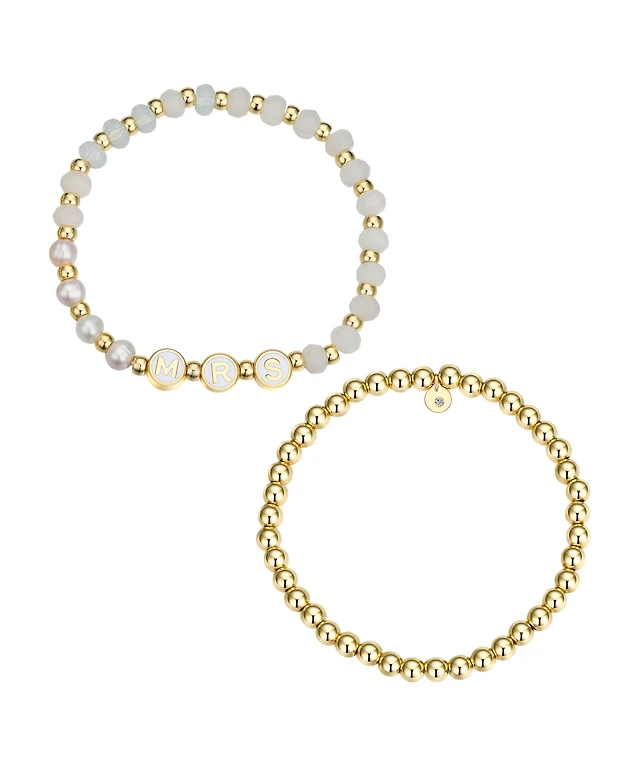 Unwritten White Quartz and Freshwater Pearl Bride Stone and Beaded Stretch Bracelet Set