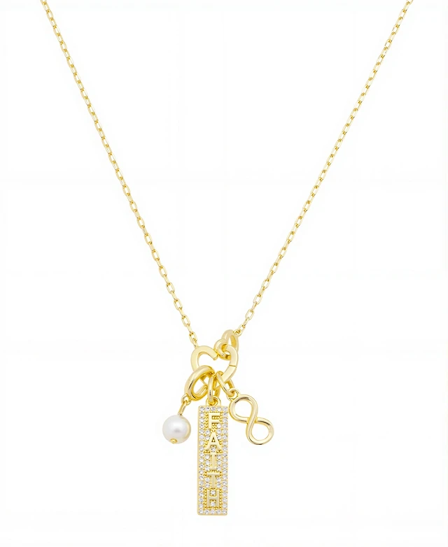 On 34th Pave, Bead & Imitation Pearl Charm Necklace, 16" + 3" extender, Macy's Exclusive