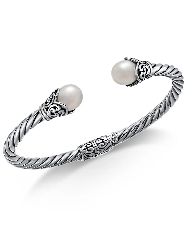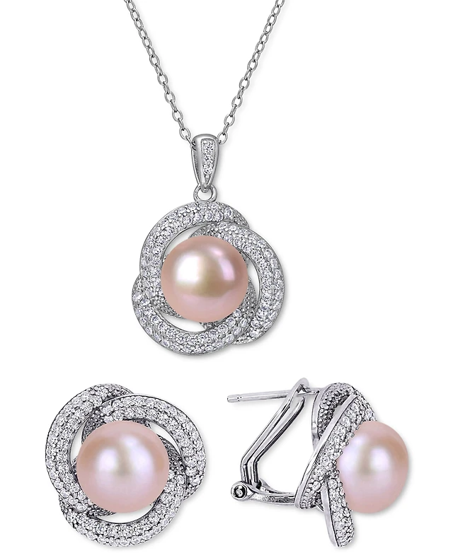 Macy's Cultured Freshwater Pearl (7.5-8mm) and Cubic Zirconia Butterfly Earrings in Sterling Silver