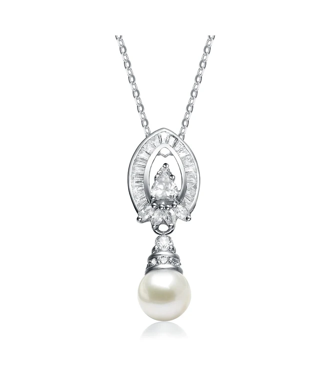 Macy's Teardrop Freshwater Cultured Pearl Cubic Zirconia Bezel Set Post Earrings