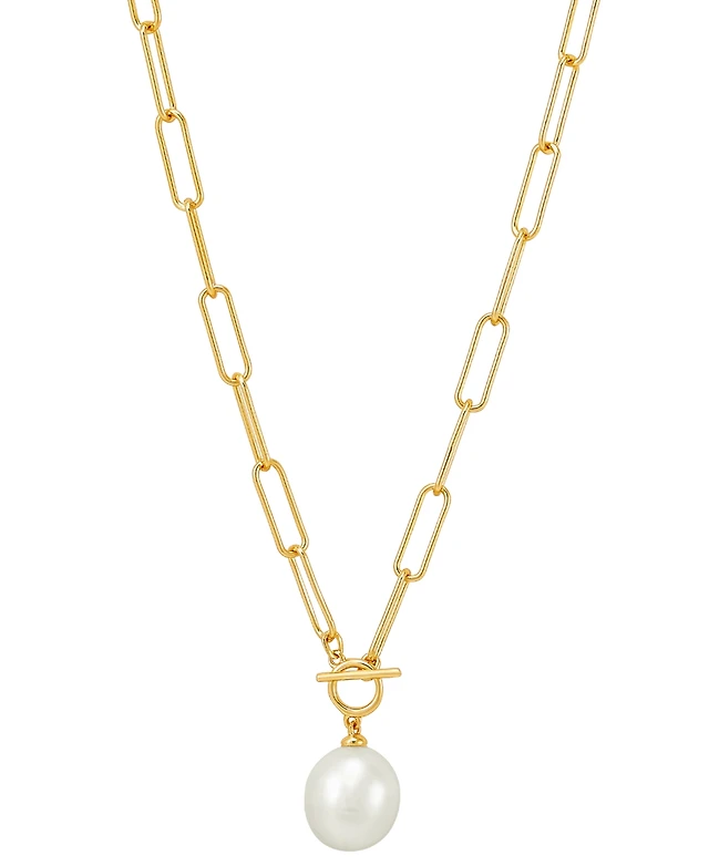 Macy's Cultured Freshwater Pearl (10mm) and Cubic Zirconia Necklace in 14k Gold Over Sterling Silver