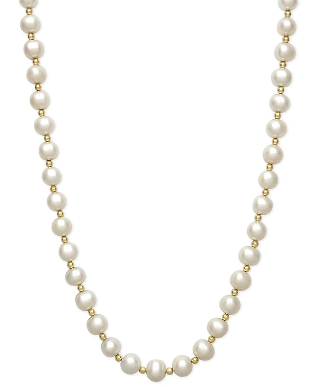Macy's Cultured Graduated Freshwater Pearl (5–9.5mm) and Bead Necklace 18" in 10K Yellow Gold