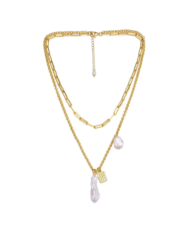 Sterling Silver 14K Gold Plated with Genuine Freshwater Pearl Drop Pendant Necklace