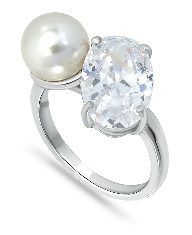 Sterling Silver 14K Gold Plated and 5MM Fresh Water Pearl Modern Ring
