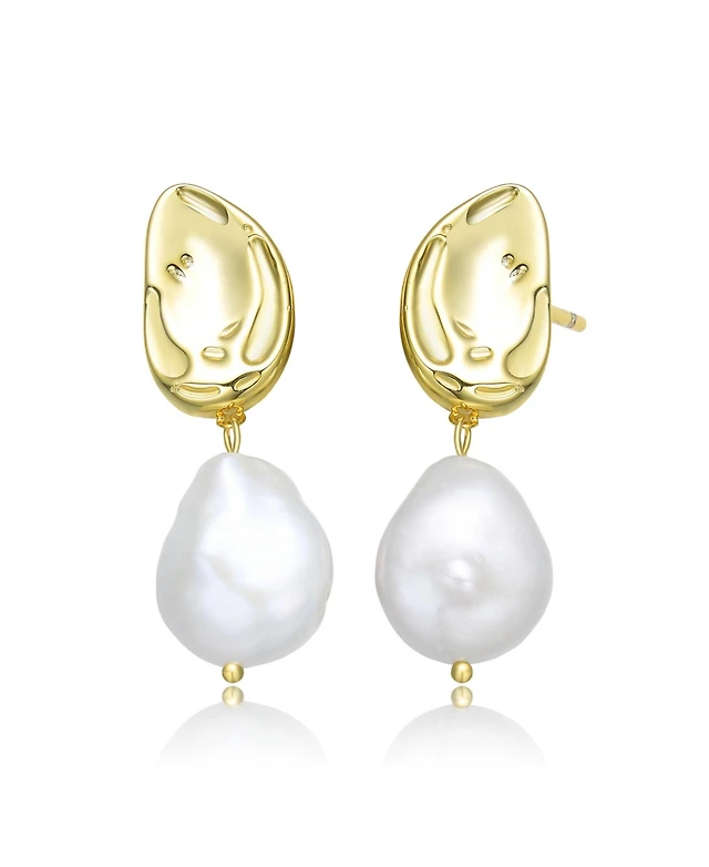 Sterling Silver 14k Yellow Gold Plated with White Freshwater Pearl Nugget Dangle Earrings
