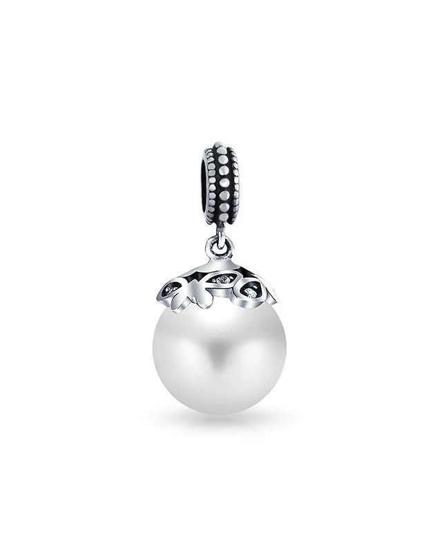 Bling Jewelry Art Deco Style Pave Cz Solitaire White Freshwater Cultured Pearl Promise Ring Silver Plated Brass