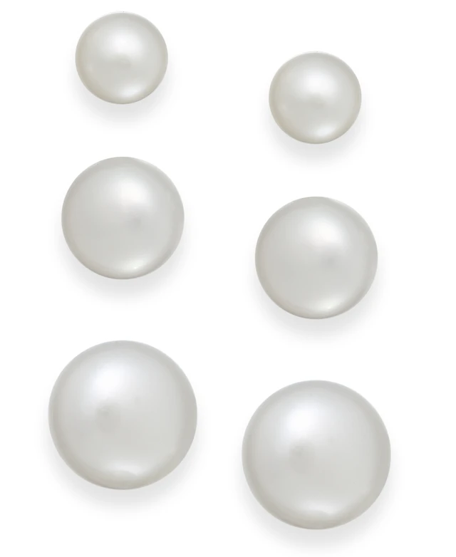 Macy's Cultured Freshwater Pearl (6-7mm) and 6mm Onyx Stretch Bracelet and Stud Set in Sterling Silver