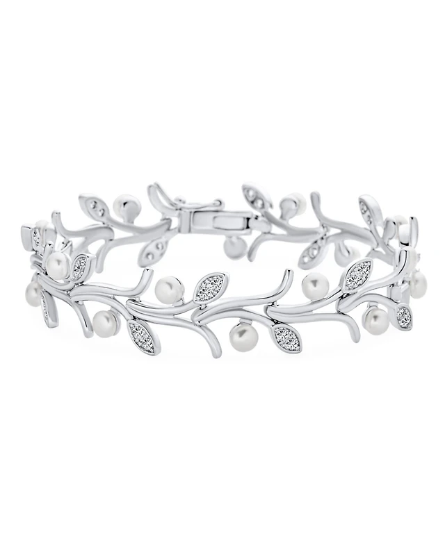 Cultured Freshwater Pearl (5mm) & Diamond (1/2 ct. t.w.) Vine 16" Collar Necklace in 14k Gold-Plated Sterling Silver