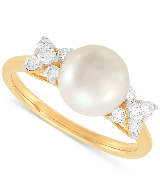 Honora Cultured Freshwater Pearl (9 - 9-1/2mm) & Diamond (1/3 ct. t.w.) Stud Earrings in 14k Yellow Gold