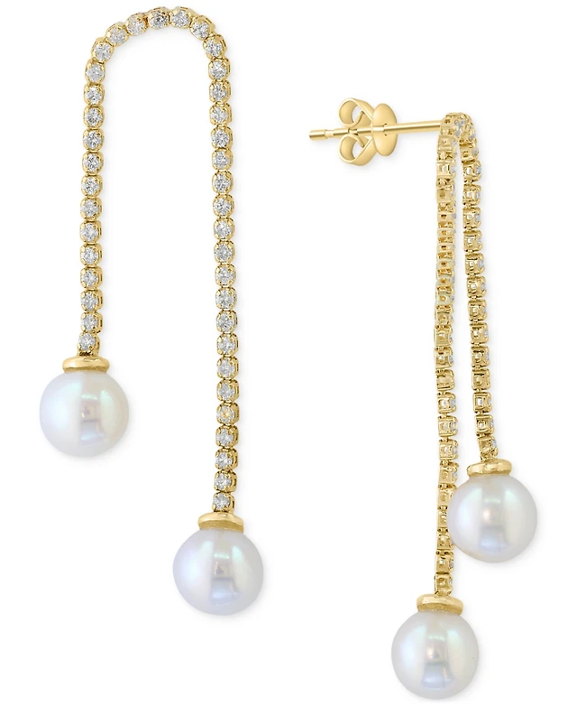 Effy Diamond (1/4 ct. t.w.) & Cultured Freshwater Pearl (10mm) Drop Earrings In 14k Gold